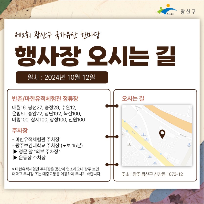 제2회 광산구 국가유산 한마당 행사장 오시는 길 안내