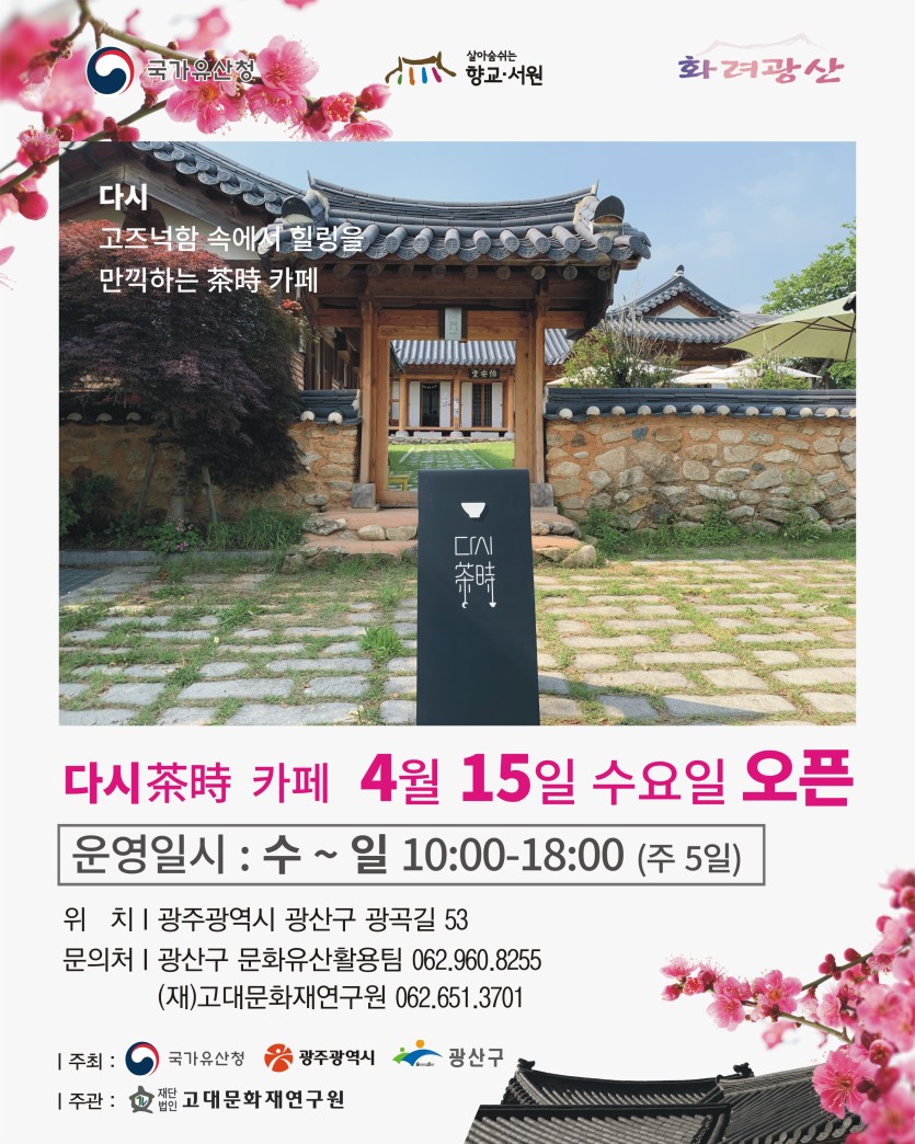 월봉서원 다시茶時 카페 전격 운영(4.15.수~)