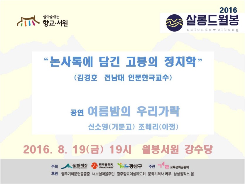 8월 '살롱 드 월봉'에서 인문학 강연 듣고 국악 공연 즐기세요.