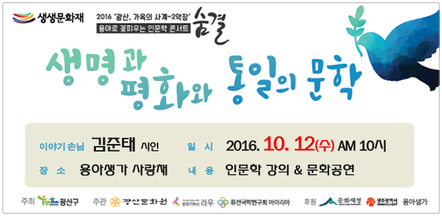 용아로 꽃피우는 인문학콘서트 '숨결' 12일(수) 개최 안내