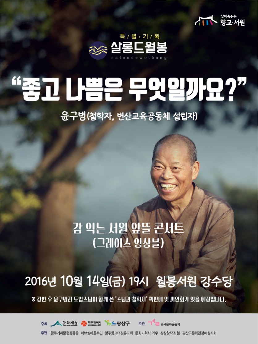 살롱 드 월봉 특별기획 : 철학자 윤구병과 함께하는 '감 익는 서원 앞뜰 콘서트' 개최 안내