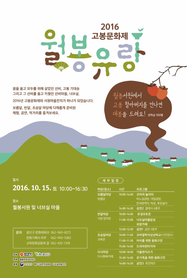2016 고봉문화제가 오는 10월 15일(토) 월봉서원과 너브실마을 일대에서 열립니다.