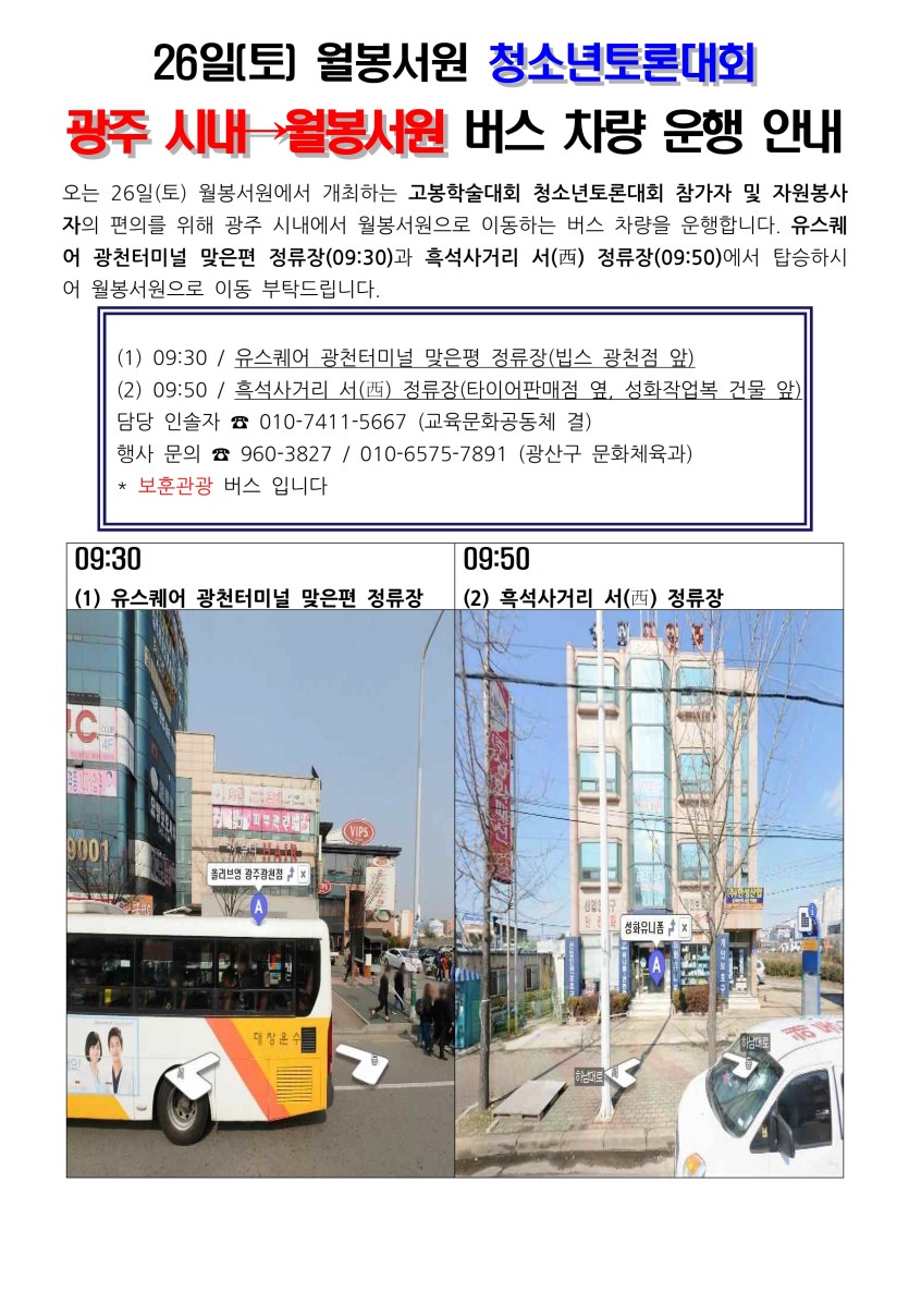 ※ 행사 후, "월봉서원→광주시내"로 가는 버스 차량도 운행합니다.
