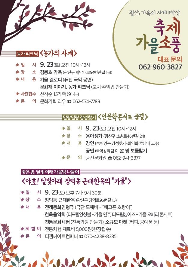 광산 삼색가옥 가을소풍 23일(토) 개최 안내