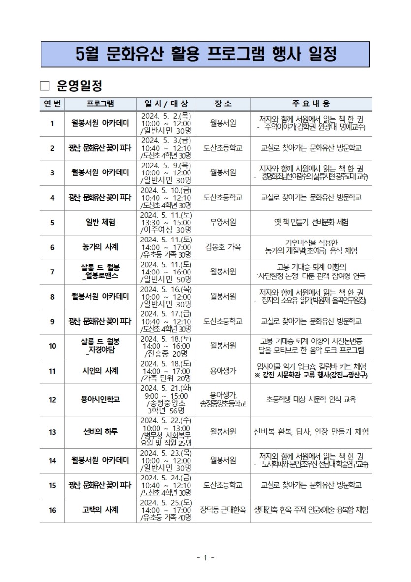 2024년 5월 문화유산 활용 프로그램 안내