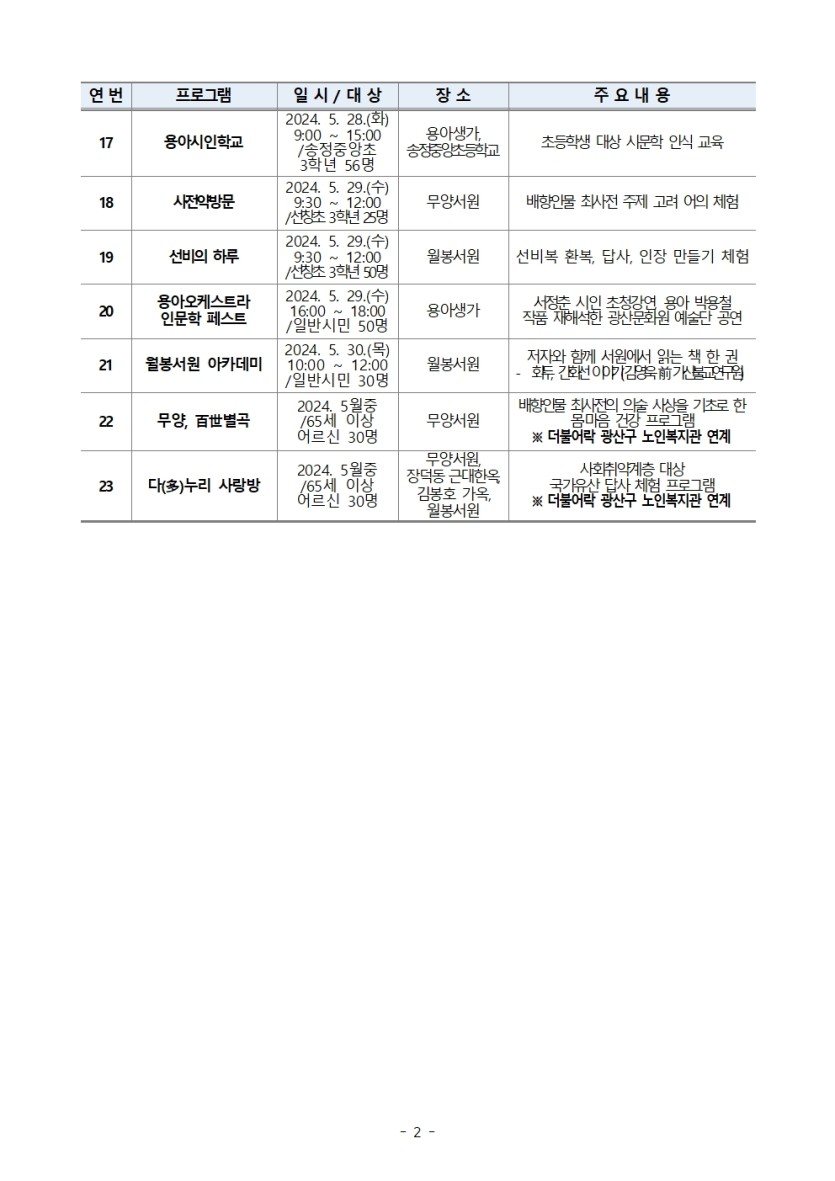 o 문 의 : 광산구 관광육성과 문화유산활용팀 062-960-8892