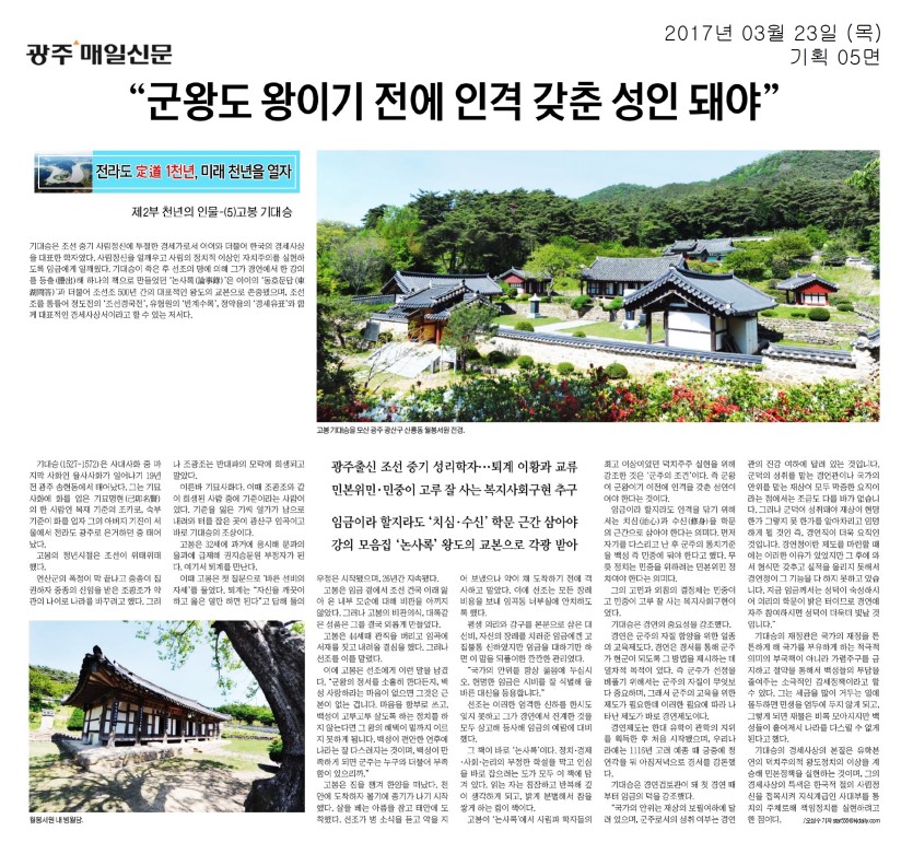 170322_군왕도 왕이기 전에 인격 갖춘 성인 돼야(고봉 기대승 기사)