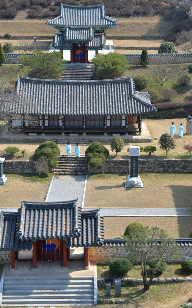 정면이 하서 김인후를 모신 사당의 문이고, 왼쪽 기둥 뒤 작은 건물이 인종이 보내준