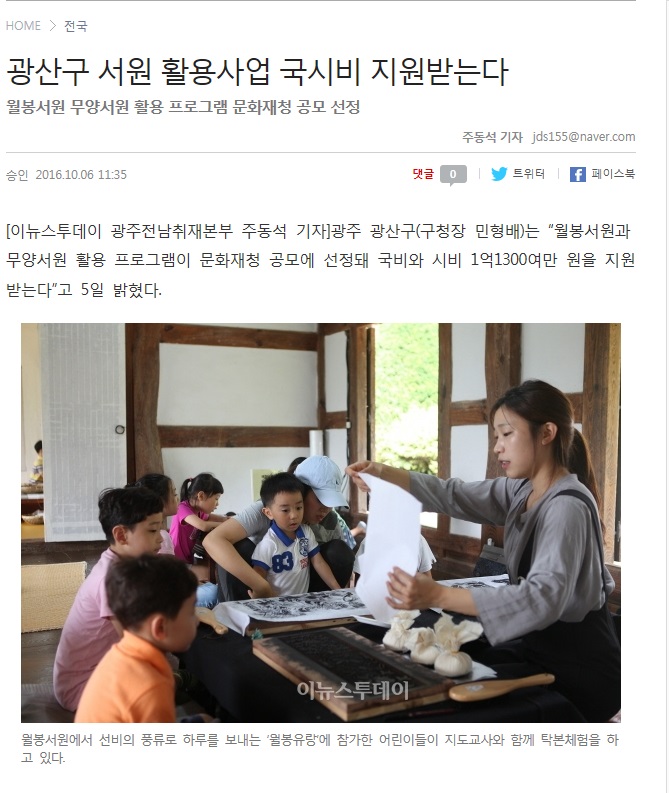101006_광산구 서원 활용사업 국시비 지원 받는다