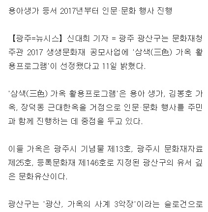 161011_광주 광산구 '가옥 활용' 문화재청 공모사업 선정