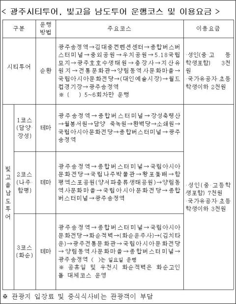 '시티투어버스'와 광주와 인접 5개 시‧군을 연계하는 테마형 '빛고을 남도투어 버스'를 운행한다고 6일 밝혔다.