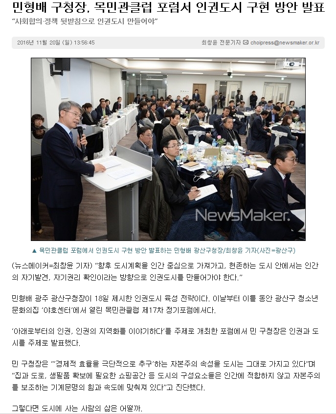 161120_민형배 구청장, 목민관클럽 포럼서 인권도시 구현 방안 발표