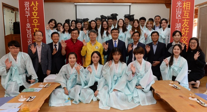 20일 오전 월봉서원 강수당에서 광산구(구청장 민형배)와 호남대(부총장 박상철)가 전통문화관광체험 상호우호교류협약을 체결했습니다. 협약에 따라 각 기관은 전통문화관광체험 및 중국형 글로벌 전문인재 양성을 통한 교육발전 역량강화를 도모하고, 외래관광객 유치방안 및 마케팅 방안을 마련할 예정입니다. 협약식을 기념한 중국 유학생 대상 팸투어 ‘高峯다움, 高峯다음’도 성황리에 종료되었습니다. 팸투어에 참가한 중국 유학생 40여명은 숭덕사 배례, 유생포토, 탁본 체험 등 ‘선비의 하루’ 프로그램을 통해 전통문화를 체험했습니다.