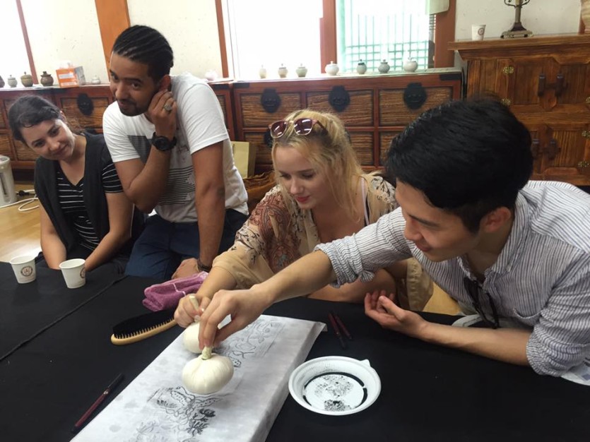 외국인 손님들은 생소한 '서원'의 공간에서 동양의 옛놀이와 한국의 전통 문화를 접했는데요. 사극에서 본 푸르스름한 유생복을 입고, 한지에 먹봉을 두드리며 탁본을 체험하는 특별함과 이국적 한옥 풍경에 모두 매료되었답니다!