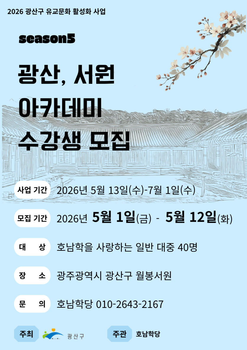 o 접수문의 : 호남학당 010-2643-2167 / 광산구 관광육성과 062-960-8892