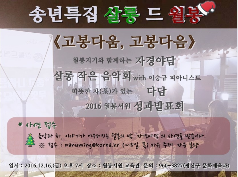 12/16(금) <송년 살롱 드 월봉 : 고봉다움 고봉다음> 개최 및 사연 신청 안내