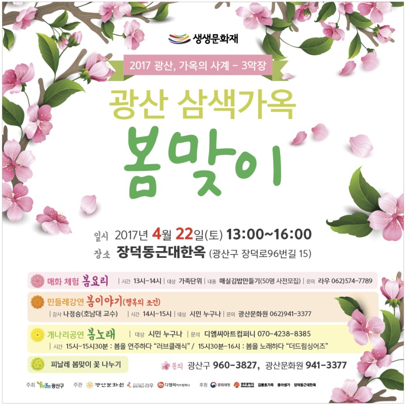 4/22(토) 장덕동 근대한옥에서 봄맞이 축제로 한 자리에서 펼쳐집니다.
