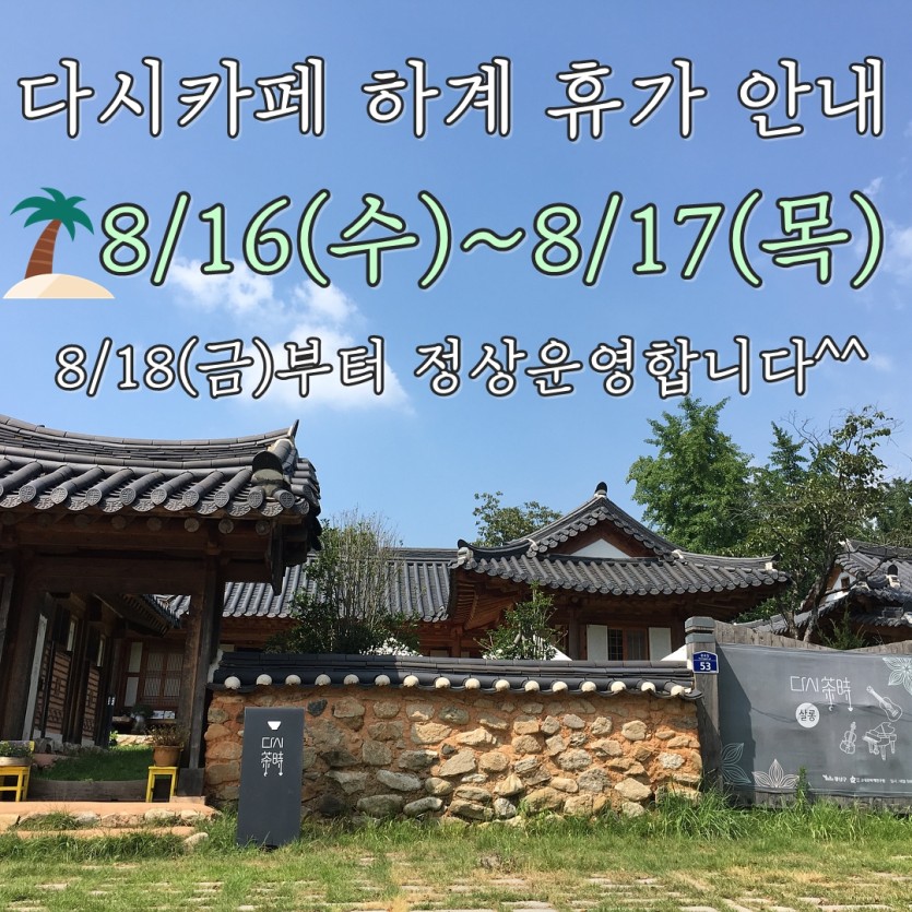 월봉서원 다시茶時 카페 하계 휴가 안내
