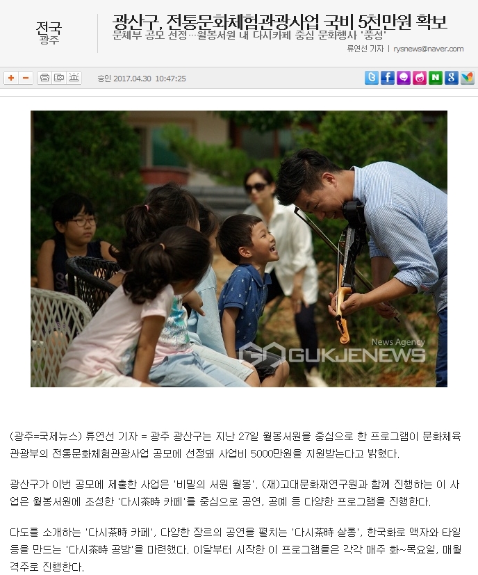 170430_광산구, 전통문화체험관광사업 국비 5천만원 확보