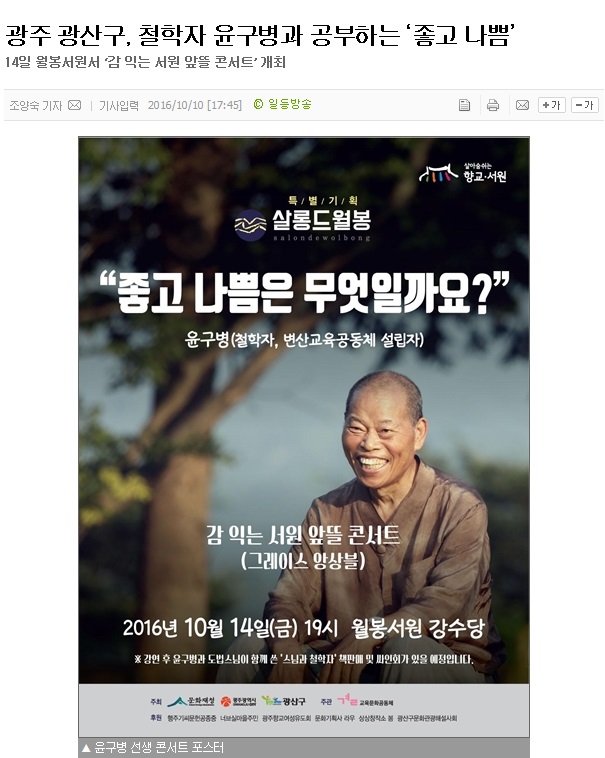161010_광주 광산구, 철학자 윤구병과 공부하는 ‘좋고 나쁨’