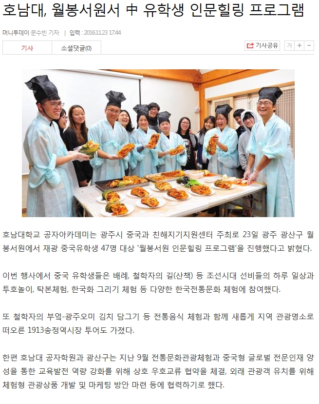 161123_호남대, 월봉서원서 中 유학생 인문힐링 프로그램
